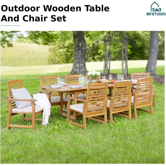 9 Pieces Wood Patio Dining Set, Teak Wooden Outdoor Dining Table Chairs Set for 8, 1 x Rectangular Expandable Table,