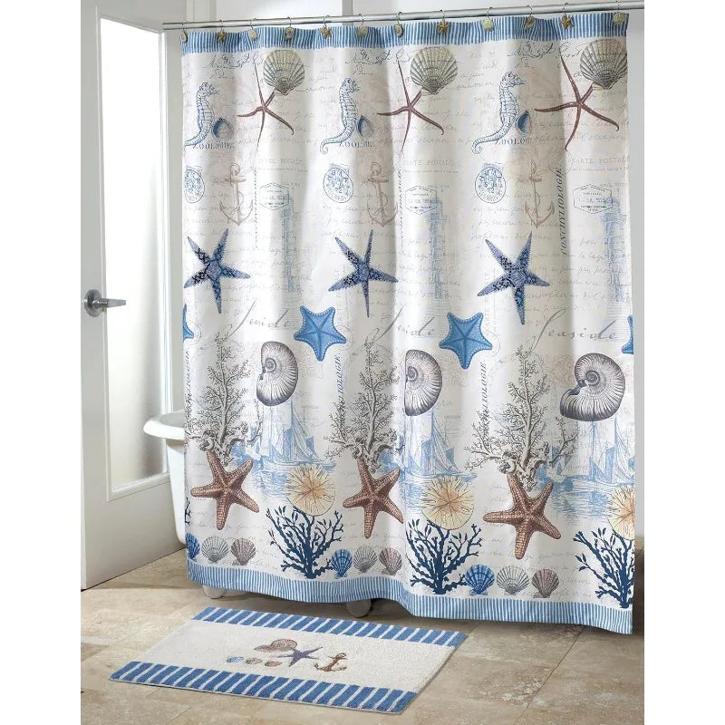 SUPERIOR QUALITY: Instill a calm, oceanside feel with this decorative shower curtain. The Avanti Antigua Ivory with Blue and Tan Starfish, Shells, and Coral Nautical Shower Curtain will immediately make you feel comforted and ready for a refreshing shower with its soothing, neutral tones. Avanti's decorative shower curtains are an elegant style choice that can enhance your bathroom decor without all the effort of a complete makeover. Made of sturdy, high quality fabric, this shower curtain will look brand new for years to come.