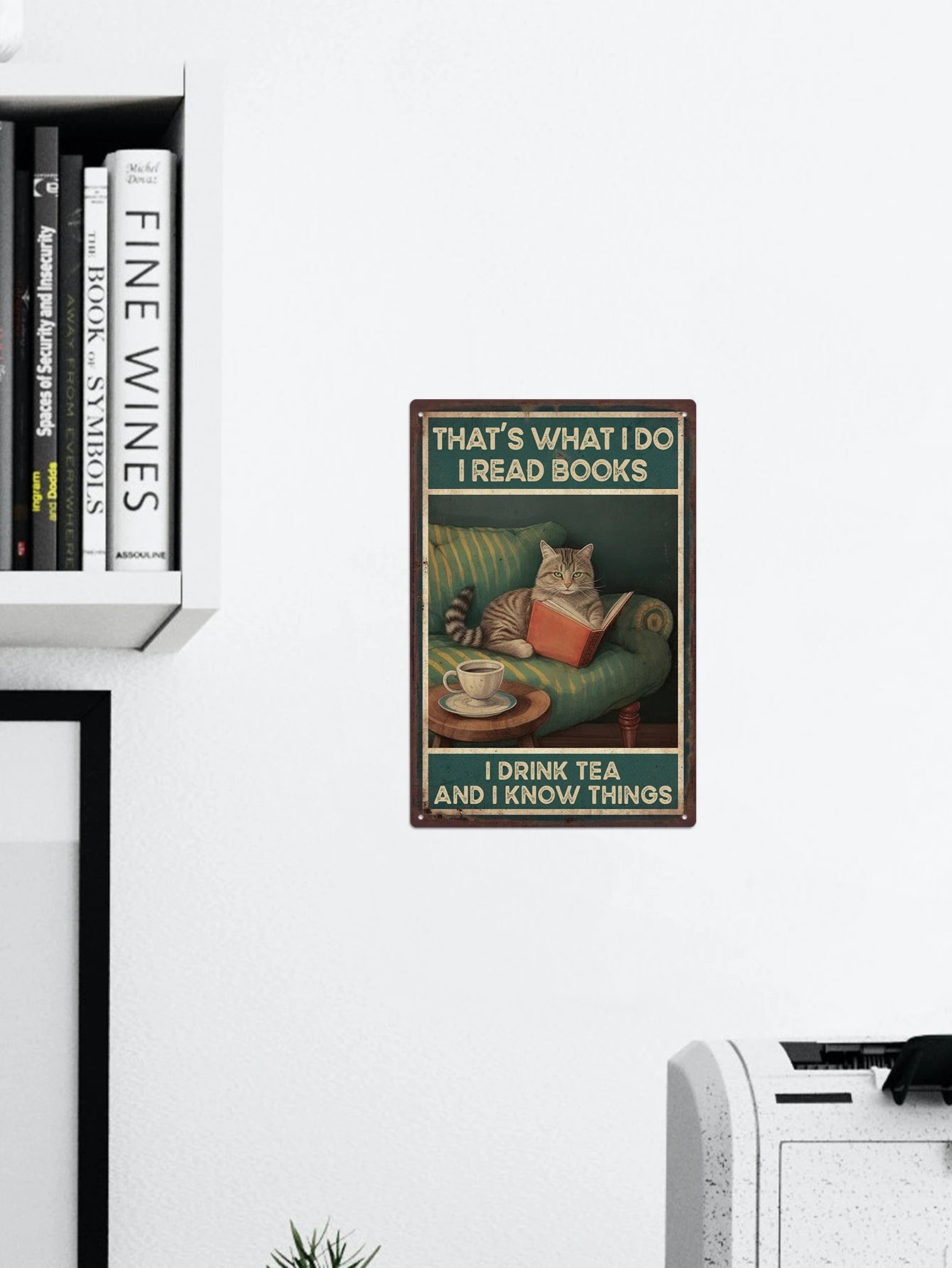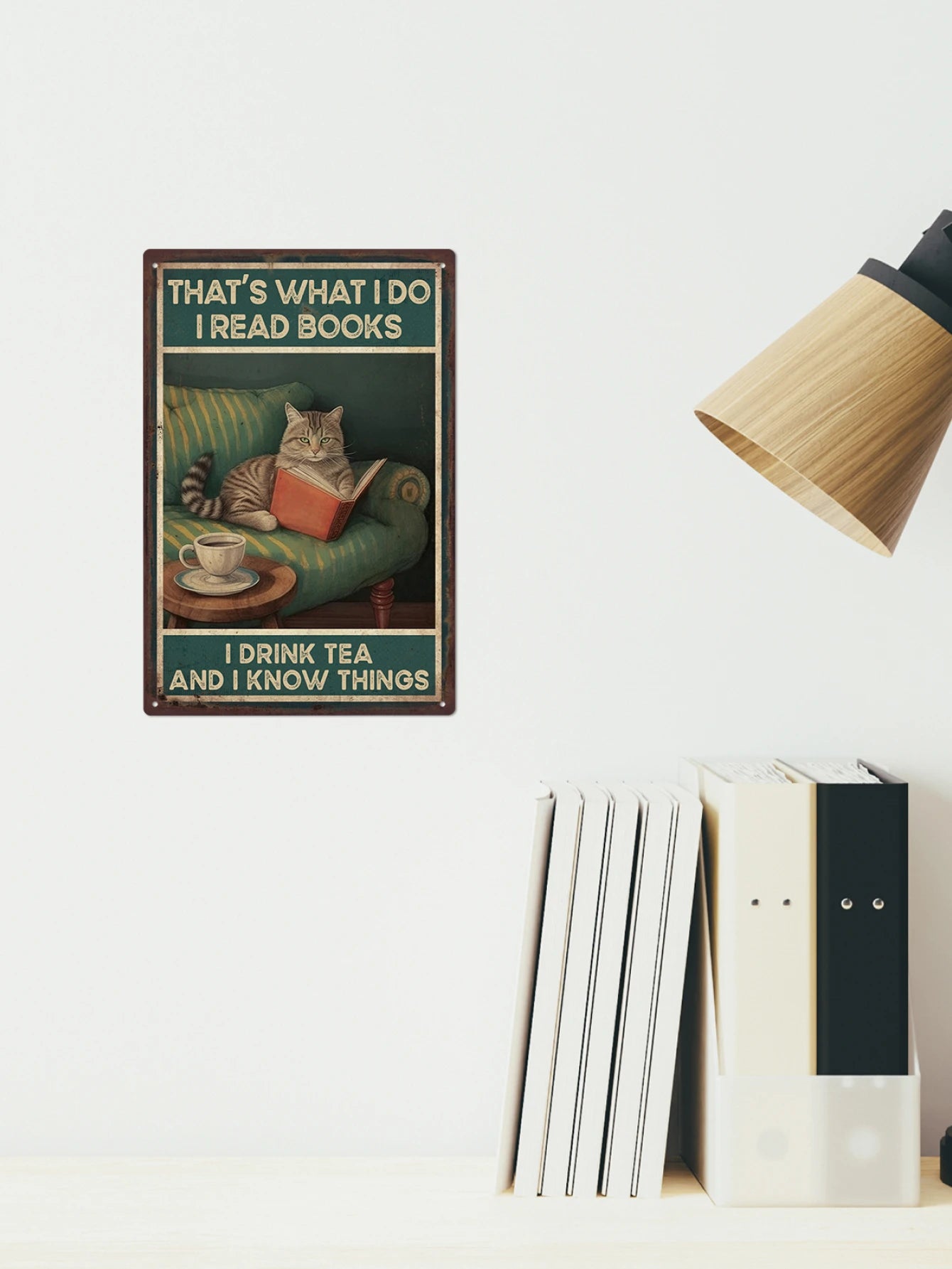 Putuo Decor 1pc Cat Metal Plaque, Retro Wall for Home Bedroom Study Wall Decor 7.9 X 11.8 Inches, Drink Tea